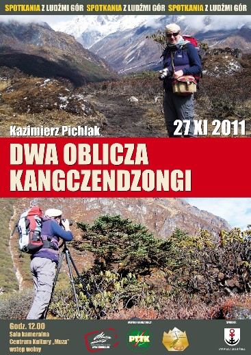 Na foto poniżej; plakat spotkania i himalaiści z Klubu Górskiego PROBLEM w rozmowie z Piotrem Pustelnikiem -